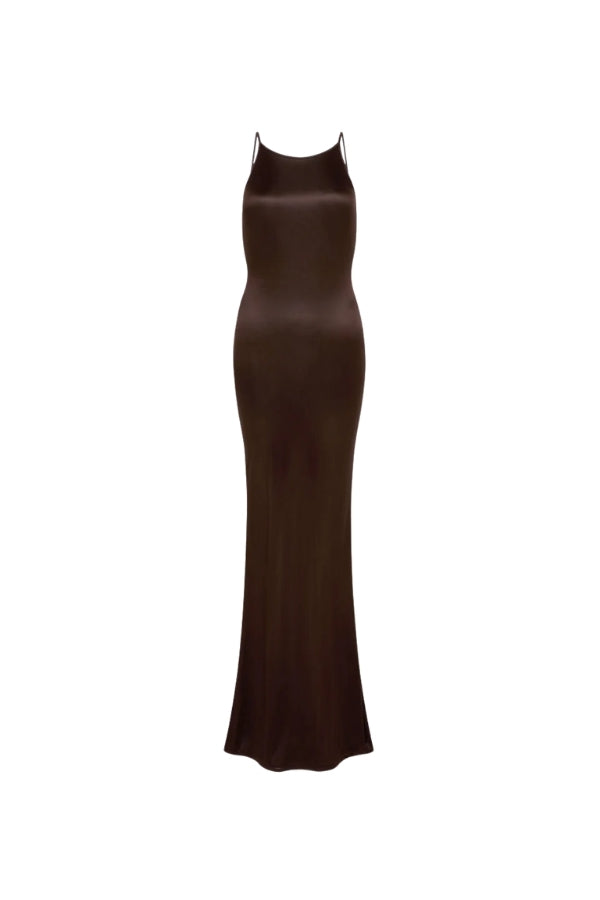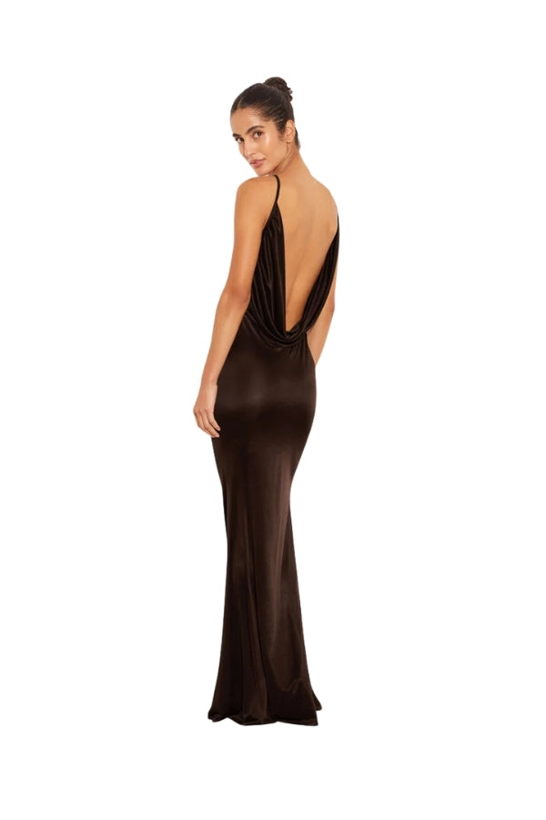 A fresh take on the LBD, Deia is our super slinky little brown dress. Cut from silky jersey with a vintage-feel sheen, Deia is effortlessly simple from the front, with an unexpectedly seductive low back cowl.