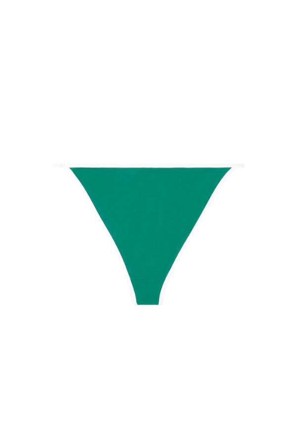 The Kate Bikini Bottom is a medium waisted style. Sporty & Rich Swimwear is made in Portugal of a ECONYL® regenerated Nylon that uses waste materials to recreate a nylon fibre with the exact same purity and performance as virgin nylon without using raw fossil materials.