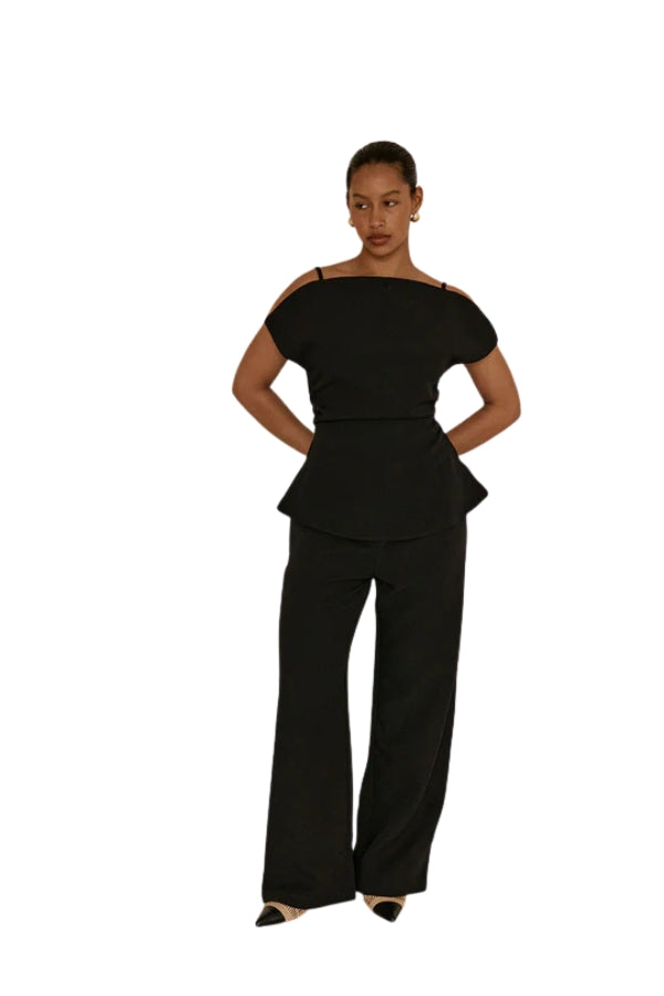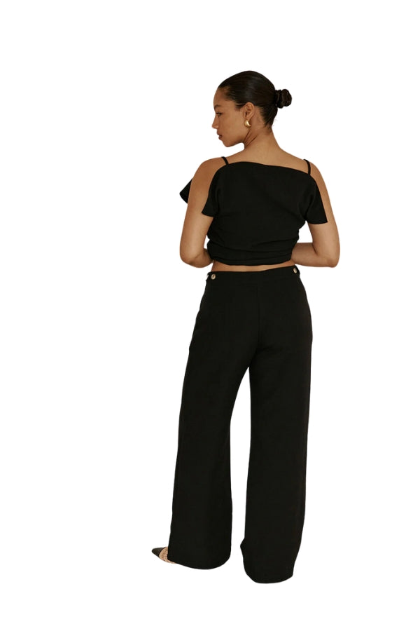 The perfect set for the modern woman that appreciates a structured set. The Naomi Pants are made from a black suiting fabric and feature a high waist with belt loops and flared fit. Designed exclusively by Sabo.