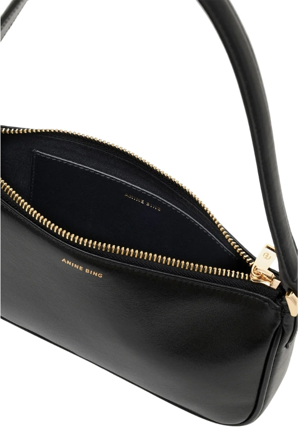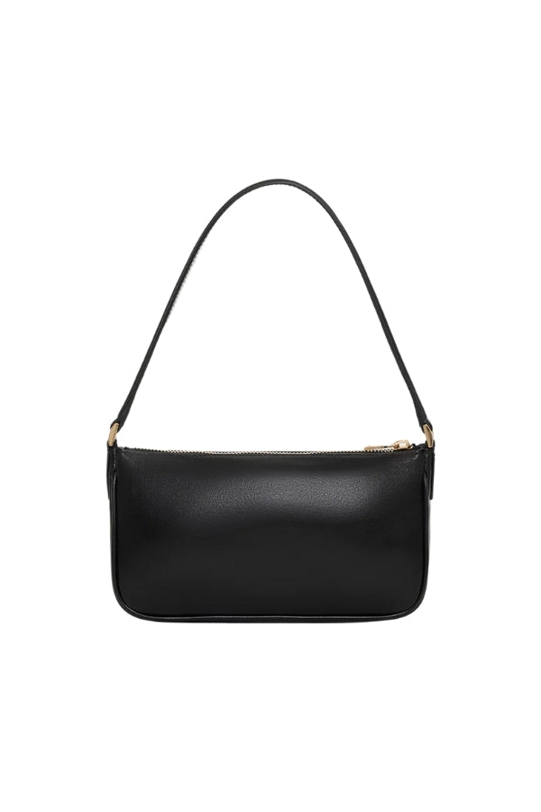A compact shoulder bag made from soft 100% leather in a rich burgundy with a slight sheen and crinkled patent finish.