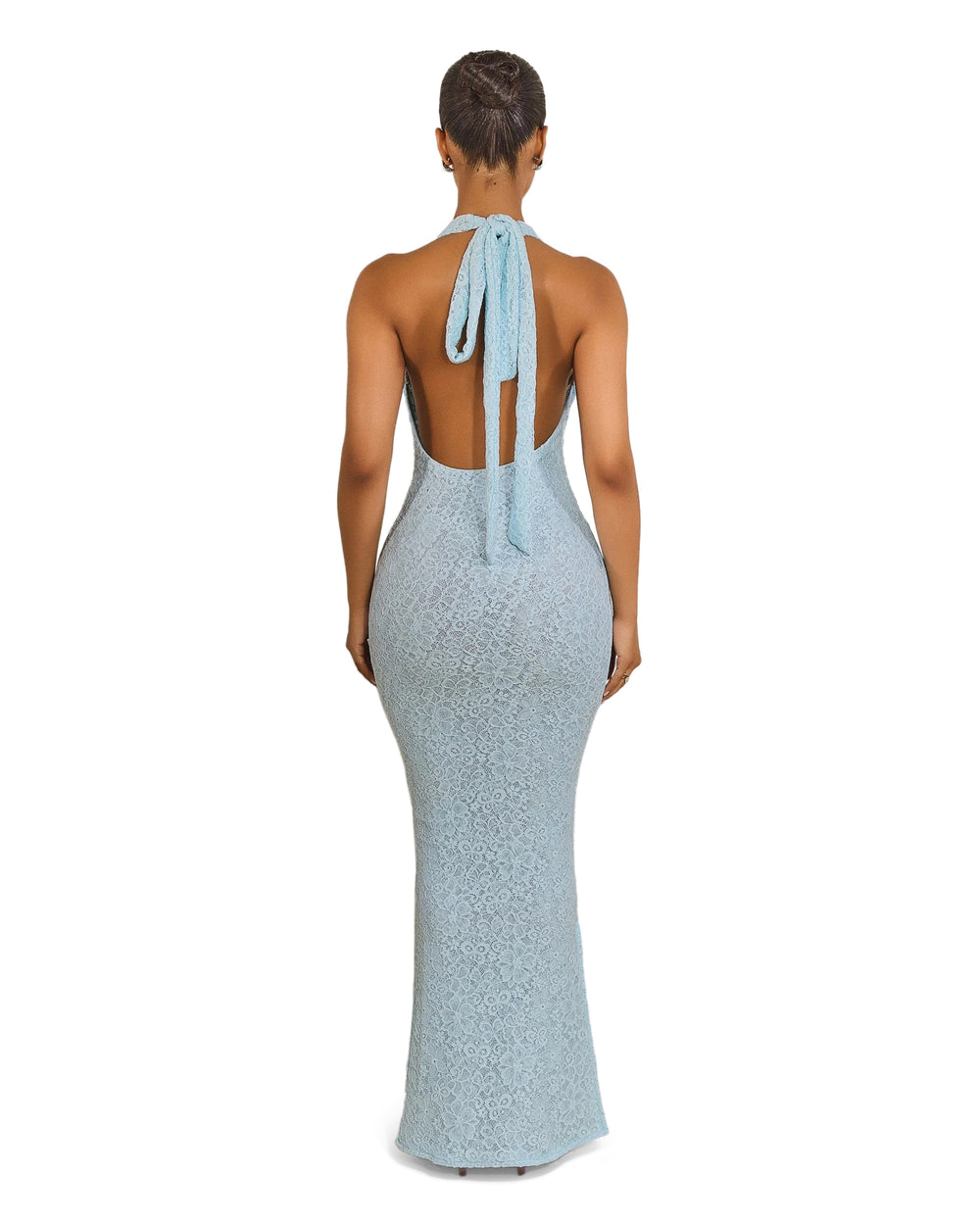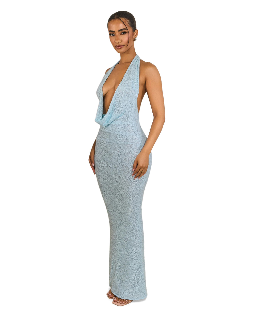 The Zena Maxi combines luxury and style with a premium lace finish and a flowing maxi length. Featuring a flattering cowl neckline, this dress secures with halterneck ties to reveal a striking backless detail. It is the ultimate statement piece for those seeking effortless glamour.