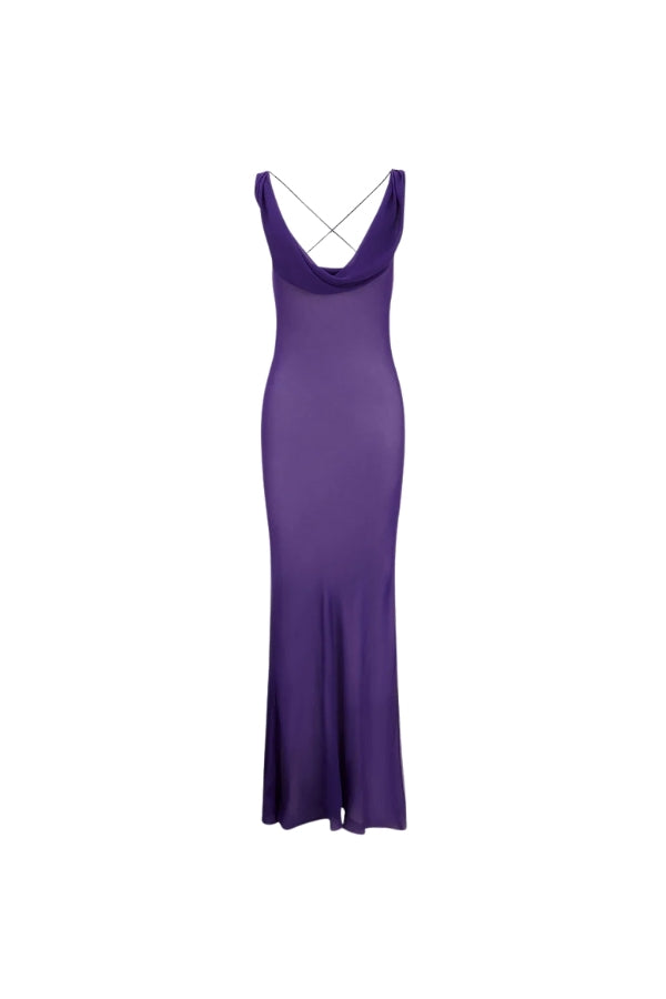 Taking Rat & Boa's signature cowl and elevating it with luxury details, the Absinthe dress is an ultra-flattering, sensual maxi with a timeless silhouette, crafted from semi-sheer viscose in a powerful shade of purple. A perfectly flawless occasion dress, it blends a floor-skimming shape with a slit skirt, cowl neckline and a low back framed with twist detailing and delicately criss-crossing straps.