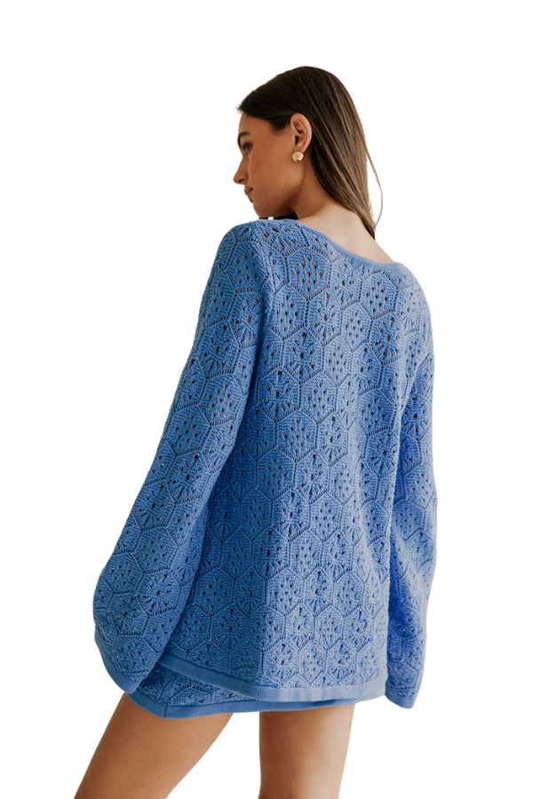 Wear it as a set or pair it back with the Ellamay Top, the Alivia Skirt is made from a natural cotton diamond knit in a blue hue. It is a high waisted style featuring a thin elastic waist, bind hem and mini length. Designed exclusively by Sabo.