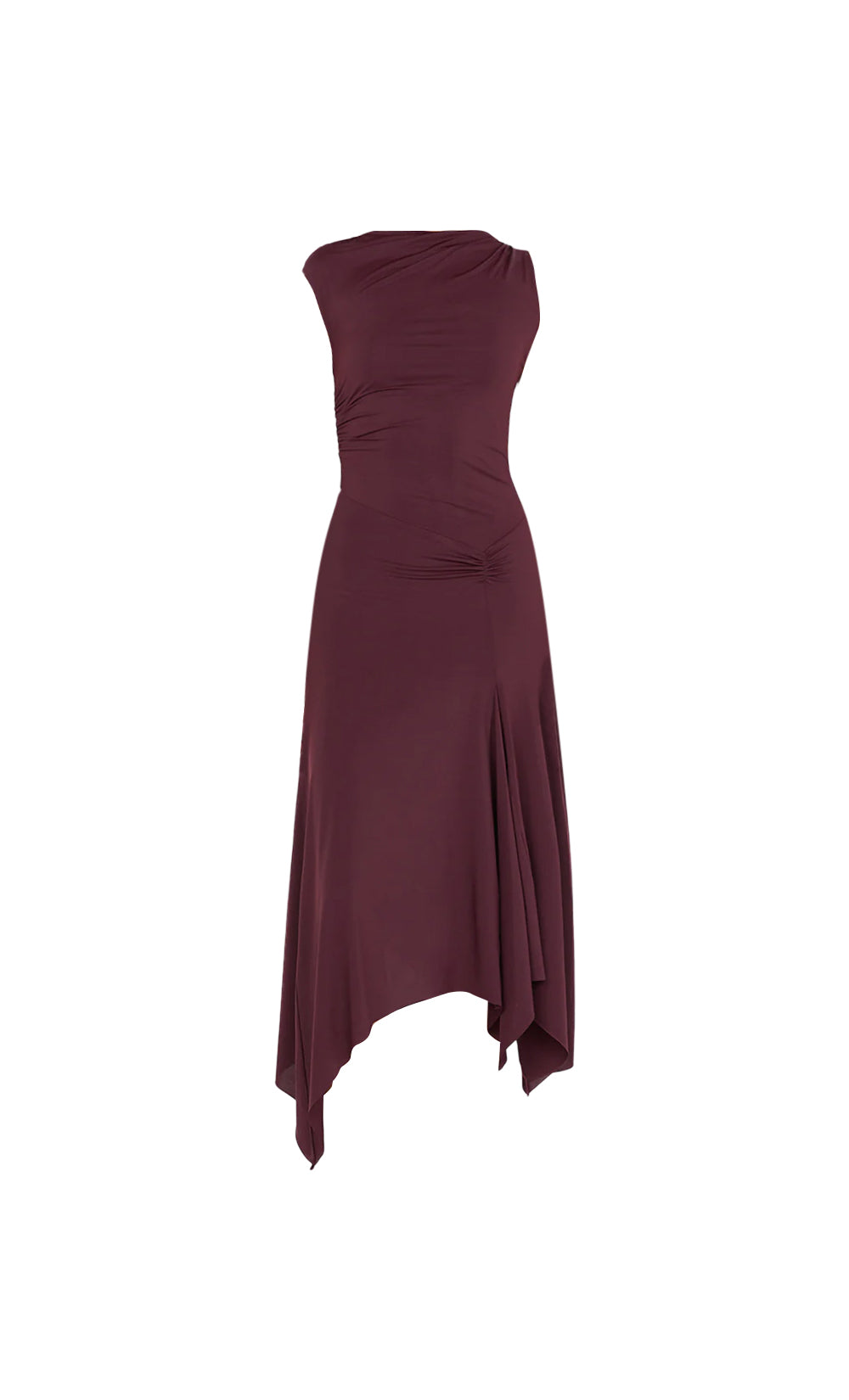 The Nara Asym Midi Dress in Plum is a modern, figure-flattering piece crafted from stretch jersey fabric. Featuring an asymmetrical neckline with a cap sleeve, this dress offers a fitted silhouette that skims the body beautifully. The midi length is finished with an asymmetrical hemline, adding a unique twist to the design. With its stretch fabric and pull-on styling, this dress combines comfort with style, making it perfect for both day and evening wear.