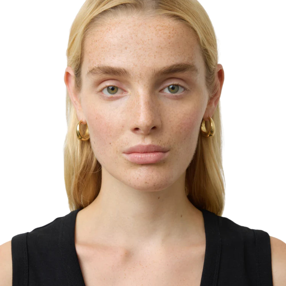 The perfect hoop in 18 carat gold-plated sterling silver that is minimal and classic. Tie or swing your hair back to keep them in focus.