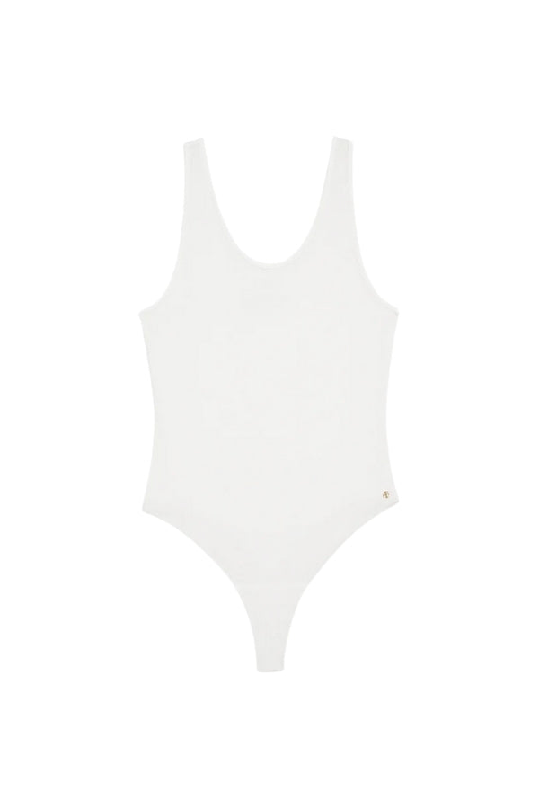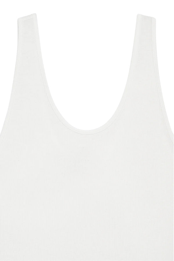 The Ginny Bodysuit is crafted from a lightweight rayon-spandex fabrication with an all-over micro ribbed texture and natural drape. It features a plunging scoop neckline and effortless, pull-on construction. Finished with a small hand-tacked ANINE BING monogram charm.