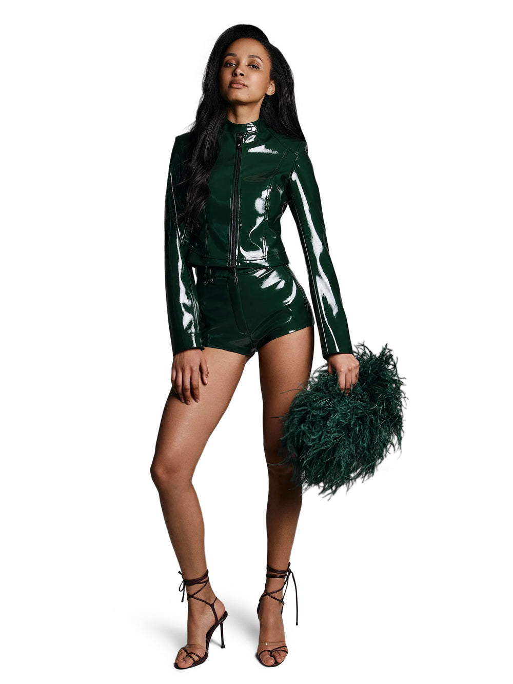 Turn every entrance into a takeover with our Motorsport Jacket in Viper Patent—slick, high-gloss attitude in a charged green tone. Structured yet fearless, it’s cut to command. Pair it with the Killa Pants in Viper patent for a full-throttle look that doesn’t just walk in—it arrives.