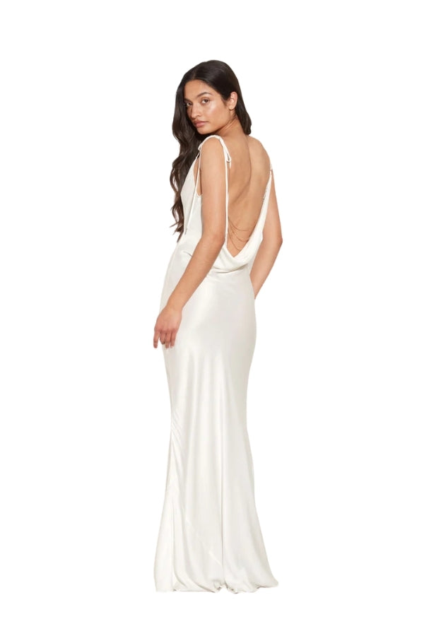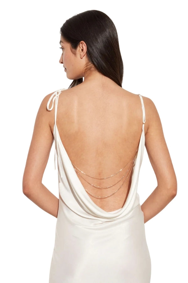 You'll find Ophelia where simplicity meets sex appeal. A Rat & Boa remix of a classic maxi slip dress, Ophelia has a cowl neck and perfectly sophisticated cowl back adorned with a detachable chain detailing that does the accessorising for you.