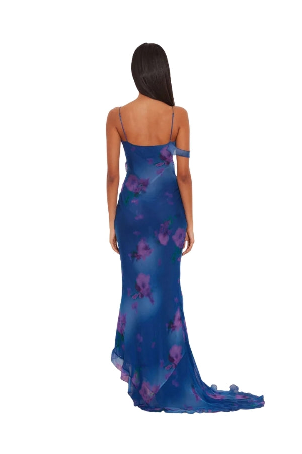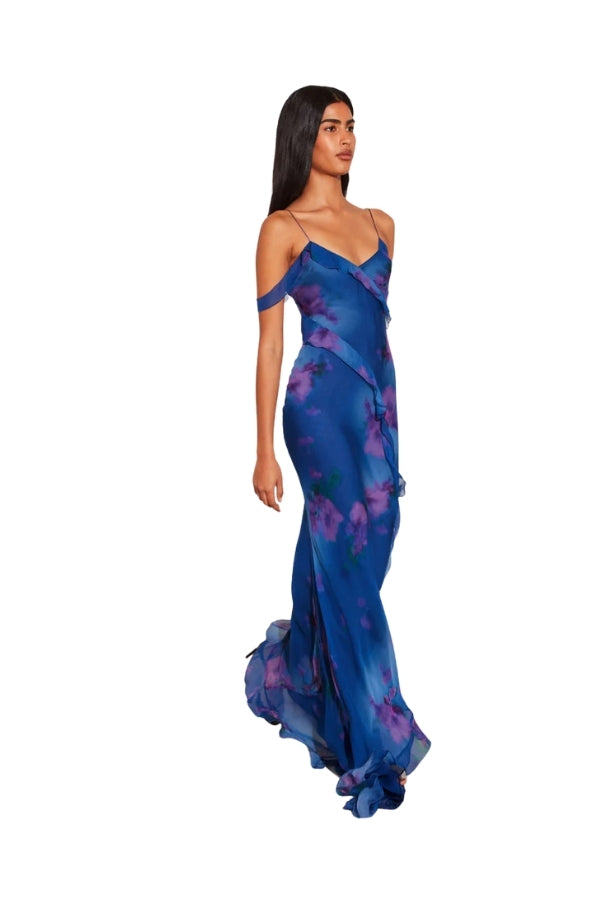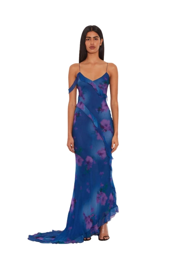 Cut from cupro chiffon that feels like silk against your skin and fully lined for comfort, Sorrento’s frilly neckline and asymmetric train bring the drama wherever she goes.