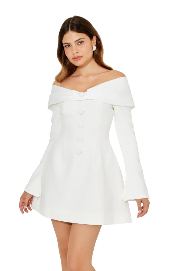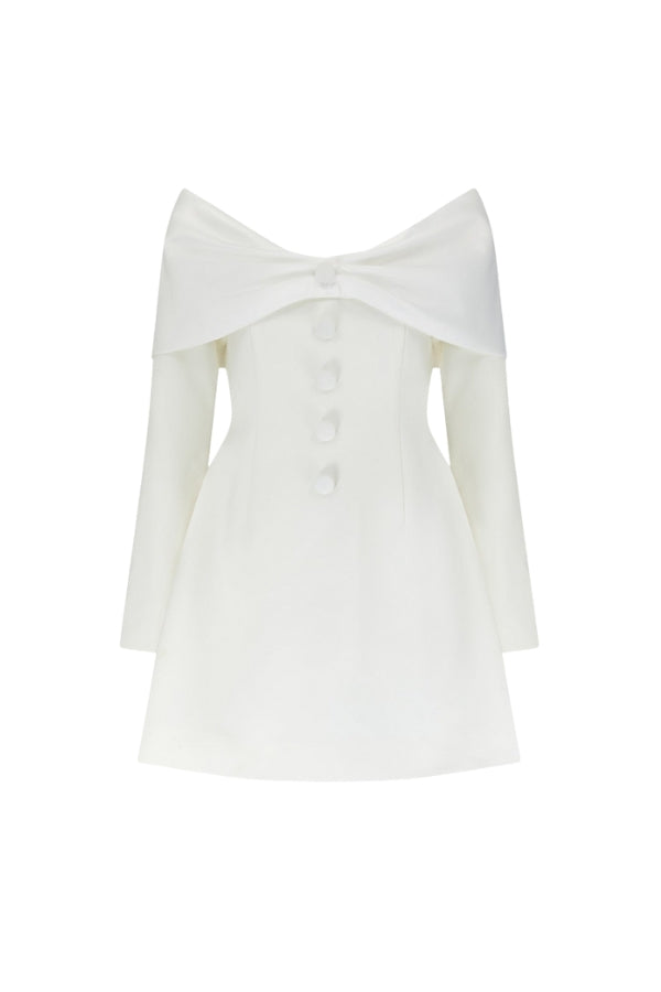If elegance was a dress, she would be it. Defined by its sweeping, off-the-shoulder neckline carefully crafted in a satin bow silhouette. The subtle contrast of the satin neckline and our signature luxury fabric that embodies the bodice seamlessly blends opulence with delicacy curating a classic look for the timeless brides. The ultimate muse dress to celebrate saying ‘I do’, simply pair with your crisp white heels for a timeless bridal look.