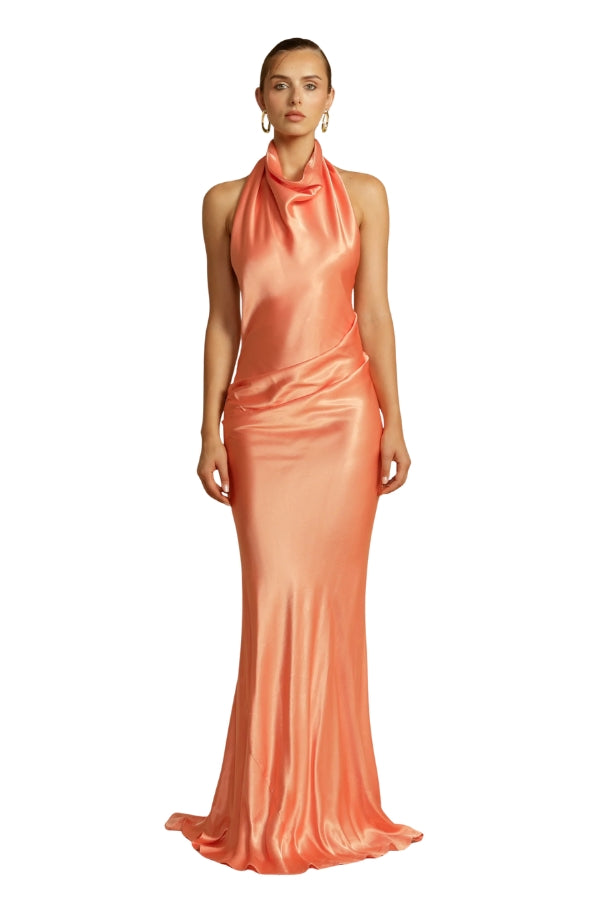 Introducing Gaia, where vintage elegance meets modern style. Crafted from a premium viscose in a rich Plum colourway, falling floor length. Gaia features a chic high cowl neckline and a daring open back for a touch of sensuality. Cut on the bias to flow over the feminine curves, intricate ruching drapes from the waist to hip to elevate and sculpt. Perfect for your mid season evening events, Gaia ensures you stand out with effortless charm.
