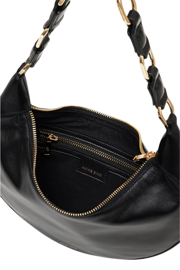 The Kate Hobo Bag is crafted from smooth 100% leather with a slight sheen. Its small, hobo silhouette features a strap made of interlocked signature links in gold-tone hardware. This night-out staple includes a zipper closure and fully lined cotton-twill interior with a single zipper pocket to keep your belongings close at hand.