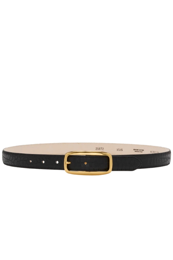 Handcrafted in Italy from full-grain Italian crocodile embossed leather and finished with a sleek, elongated rectangular buckle in radiant 24k gold tone — the perfect balance of boldness and simplicity.
