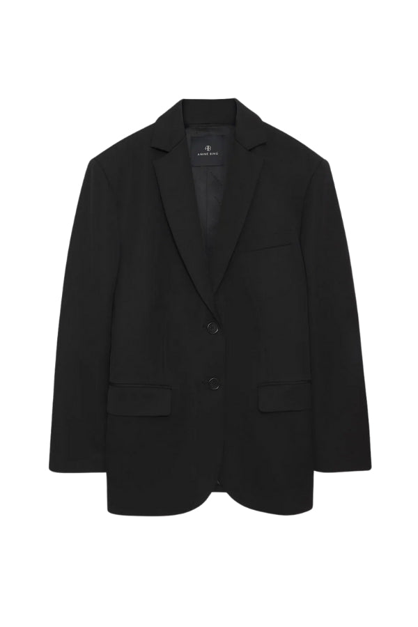 A constructed blazer cut in a midweight wool suiting fabrication, featuring a classic oversized fit, notched collar, and single-breasted closure with two buttons.